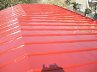 | 瓦棒(トタン)屋根 の写真じゃ。 こちらの屋根は塗替えを何度かされたが、その度に、すぐにハガレてしまったとの事じゃ。 ワシが判断するに、 下塗り塗料の選択ミスじゃ |