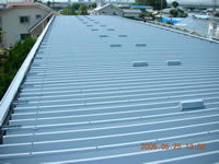 トタン屋根は塗替えをすると光輝いてきれいじゃろ。 遮熱塗装をしようしておるから、 熱も反射しておるぞい! |