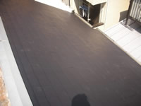 トタン屋根 ・・・ 遮熱シリコン塗装 サビが多く出る前の塗装でした。 鉄板の上は本当に高熱で、遮熱塗装前 と 後 の違いが 足にビンビン伝わってきました。 鉄には、遮熱塗装がお勧めです^^ |